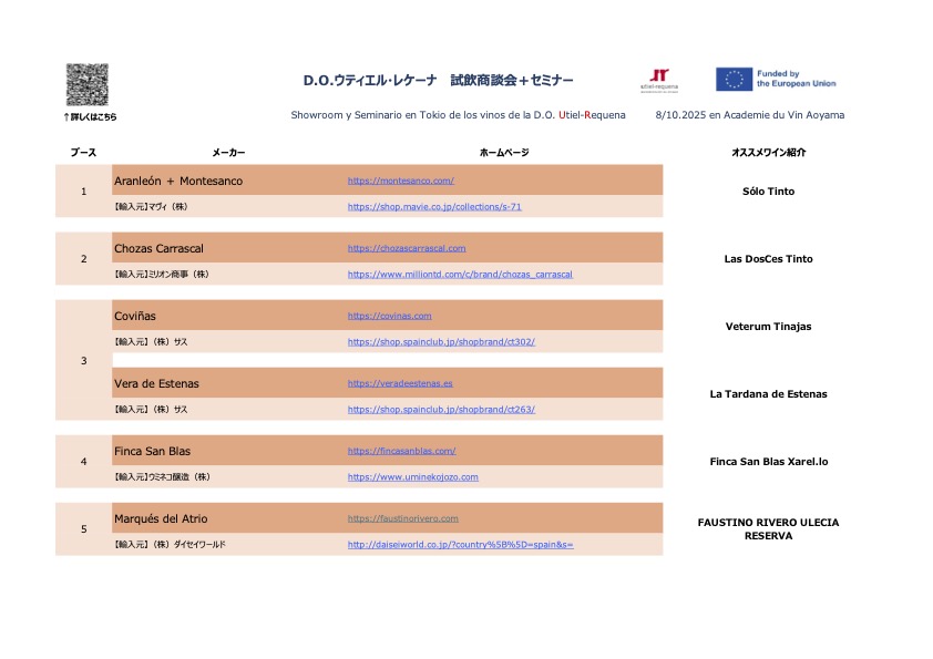 今回の出展は以下の通りです。各社の情報と出展ワインはここをクリックしてご覧ください。連絡先、担当者名も掲載していますので、ご興味のある方はご連絡ください。